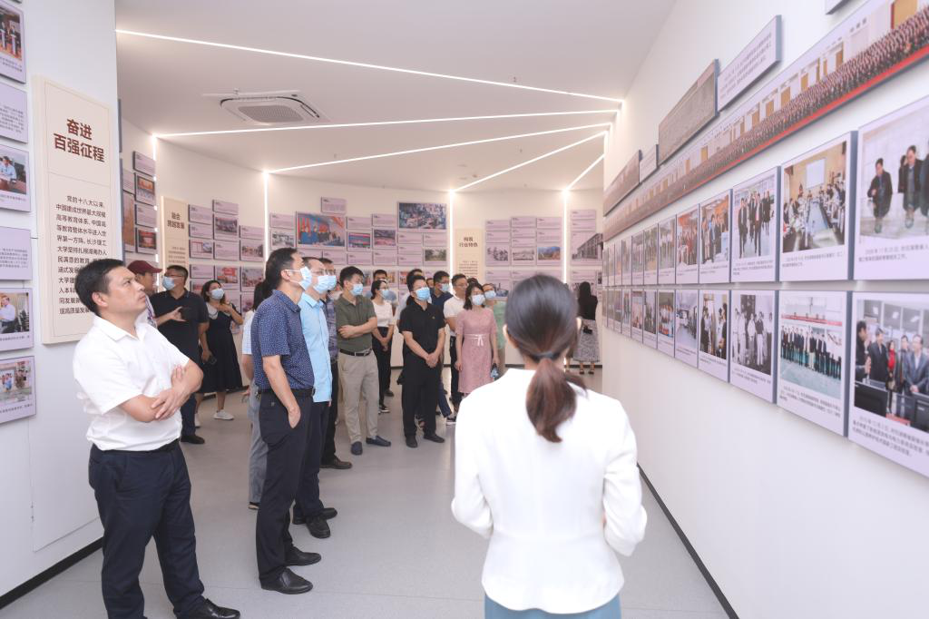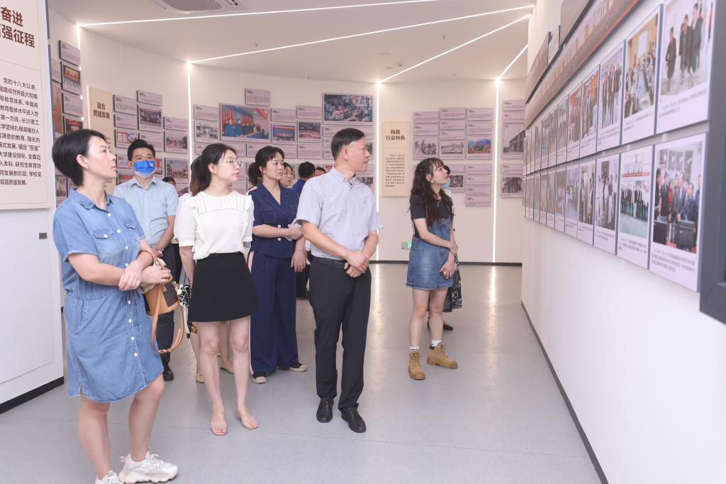 在讲解员的带领下,大家依次沿着序厅和“国之大者”“材之茂者”“师之贤者”“行之实者”四个篇章路线,全方位了解MG冰球官网与时代同发展、与人民齐奋进,始终牢记“为党育人、为国育才”初心使命所取得的丰硕育人成果。一张张照片、一件件实物、一段段视频,深刻诠释了长理教师立德树人、潜心育人的浓烈情怀和使命担当,充分彰显了长理学子奋发图强、立志成才的坚定意志和报国信念。