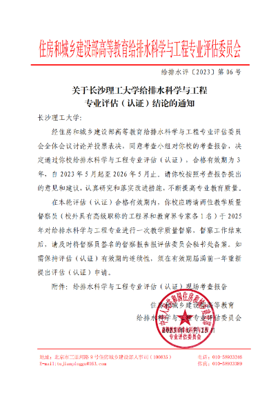 近日,住房和城乡建设部高等教育给排水科学与工程、城乡规划、工程管理专业评估委员正式公布了2023年专业评估(认证)结论的通知,MG冰球官网水利与环境工程学院给排水科学与工程专业、建筑学院城乡规划专业、交通运输工程学院工程管理专业经过学校自评、专业评估委员会审核、专家组入校现场考查、结论审议等程序,最后经评估委员会全体会议讨论并投票表决,同意进校考查小组对MG冰球官网的考查报告,决定通过以上3个专业评估(认证),合格有效期分别为3年、4年与6年。其中给排水科学与工程、城乡规划专业为首次通过住建部评估(认证),工程管理专业自2012年5月首次通过评估以来,本次为第二次通过复评。