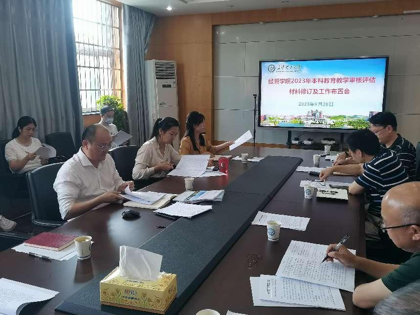 9月28日下午,经管学院召开“2023年本科教育教学审核评估材料修订及工作布置会”,会议由副院长(主持工作)彭新宇主持,全体院领导、各系各教研室正副主任、支部书记和各办主任参加。