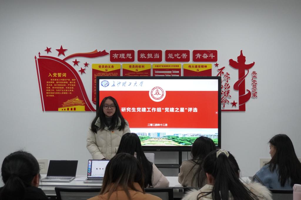 为充分发挥经管学院研究生党建工作组优秀学生的先锋示范作用,工作组于12月30日晚上在经管大楼102教室举行2024年下半年“党建之星”评选活动。我院党委副书记汪功伟,研究生辅导员周路路、肖翠出席评选大会,党建工作组各组长担任评委,大组长孙羽熙主持。