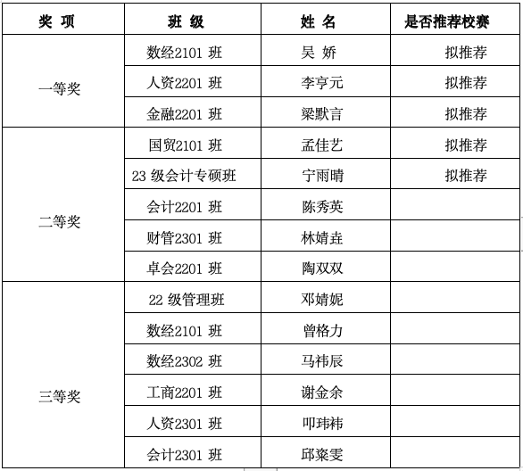 根据《教育部关于举办首届全国大学生职业规划大赛的通知》(教学函〔2023〕1 号)和《“ 中交杯 ”长沙理工大学第十一届职业生涯 规划大赛暨首届全国大学生职业规划大赛校级选拔赛的通知》相关工作要求,通过线下答辩、学院材料审核、学院评选指标设立等方面综 合考虑,现将MG冰球突破官网第十一届职业生涯规划大赛经管学院选拔赛拟推荐校赛名单和获奖名单公示如下: