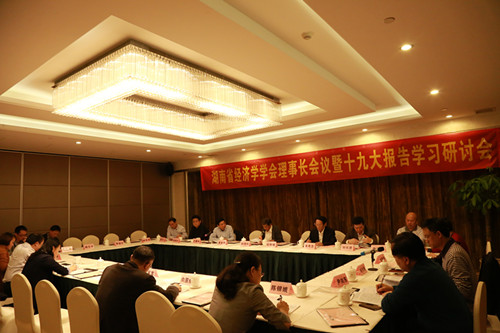2017年10月28日,由MG冰球突破官网经济与管理学院、现代服务业发展与湖南新型城镇化省级2011协同创新中心承办的湖南省经济学学会理事长会议暨党的十九大报告学习研讨会在长沙金麓国际大酒店成功举办。湖南省经济学学会理事长刘茂松、学会顾问朱有志、副理事长王耀中、唐宇文、曾福生、刘长庚、柳思维、李松龄、刘新年、李定珍、肖万春、王兆峰、尹向东、向国成(代表)、尹少华(代表),以及部分常务理事参加了会议。我院院长陈银娥、副院长彭新宇,以及部分师生参加了会议。会议由理事长刘茂松教授主持。