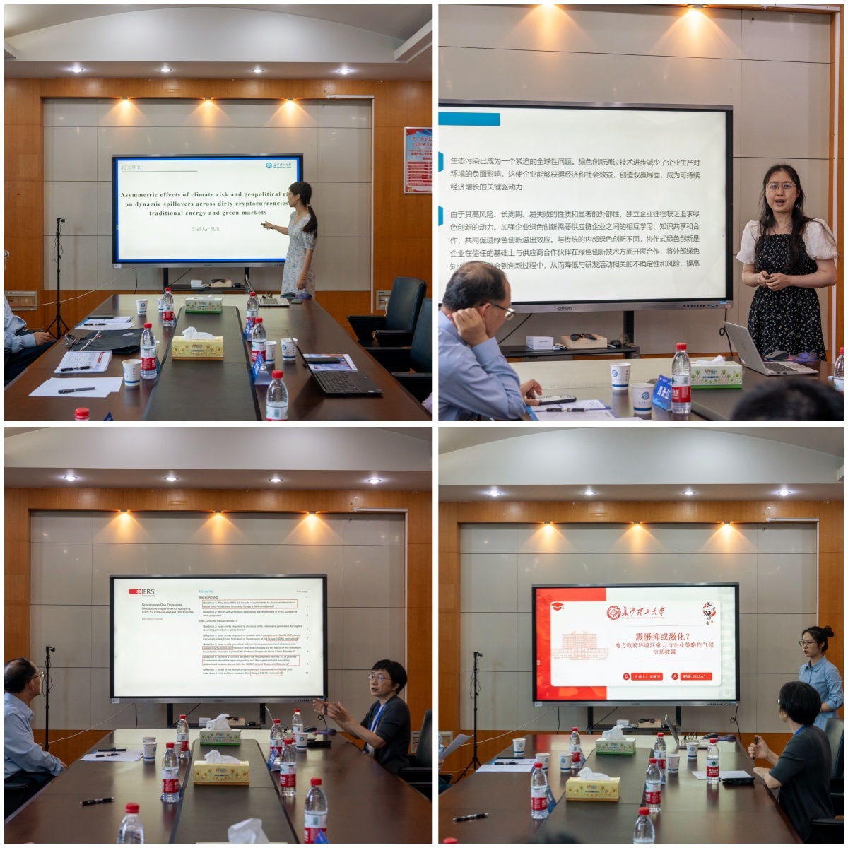 7日下午在经管大楼307室举行学术论文研讨会由MG冰球突破官网张新华教授主持。王竹泉教授探讨了企业异质性资源测度及其对财务报告改革的启示;沈洪涛教授从会计视角构建供应链低碳管理理论框架。MG冰球突破官网陈巧博士基于财会监管外生冲击,研究其稳定资本市场的机制;吴昊博士剖析了气候风险与地缘政治对加密货币、化石能源、绿色市场风险传递的影响;张茗博士利用社会网络分析探索供应链焦点企业对绿色协同创新的作用;博士生龙丽宇则分析了政府环境注意力对企业策略性气候信息披露行为的影响。吕长江教授、刘斌教授应邀担任点评专家从不同角度对论文进行了的精准点评,提出了完善建议。研讨会拓宽了研究视野,与会师生纷纷表示受益匪浅。