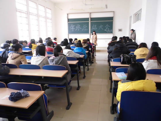 为总结过去,展望未来,2013年12月25日中午12时30分,经管学院朋辈心理工作年终总结大会在文科楼D101教室召开。MG冰球官网心理健康教育中心熊恋老师、我院心理辅导员李丽兰老师以及我院朋辈心理部、各班心理委员等共计80余人出席了此次大会。