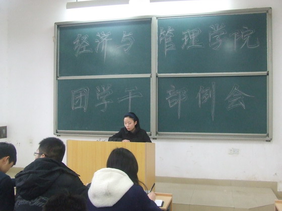 为确保新学期各项工作的顺利开展,确保学生干部以饱满的学习热情、良好的精神面貌迎接新学期的开始,2014年2月23日,经管学院分团委团学干部大会在文科楼D101教室召开。会议由分团委书记陈钰汀主持,对开学初各项工作进行安排部署,学生会主席团及各部门参加会议。