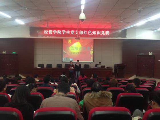 11月11日下午4:30,经过精密的筹划与安排,本着加强我院学生党员党的理论学习,增进支部间的友好感情交流,经济与管理学院所有党员和本期党校学员在文科楼a200举办了经济与管理学院“红色”知识竞赛。