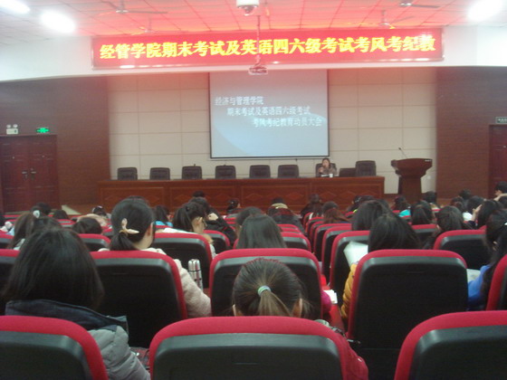 常老师以“诚实守信”这一中华民族的传统美德为切入点,首先让同学们明确“提高自身修养,做一名诚信学生”的认识,强调同学们要切记“分数诚可贵,奖励价更高,若为诚信故,两者皆可抛”这一观念。随着期末考试及英语四六级考试的临近,常老师为同学们分析了考前充分准备的必要性,告诫同学们备考期间务必戒骄戒躁,端正心态正确面对考试。她明确了一名合格大学生应该遵守的文明行为及规范,强调MG冰球官网处罚考试舞弊现象的纪律,敦促各班学生干部要在学风建设上以身作则,发挥带头作用,会议结束之后应及时召开主题班会,向班级同学传达本次考风考纪动员大会的精神要领,为经管学院严肃考场纪律撑起一道“诚实、文明、自觉、奋进”的亮丽风景线而共同努力。