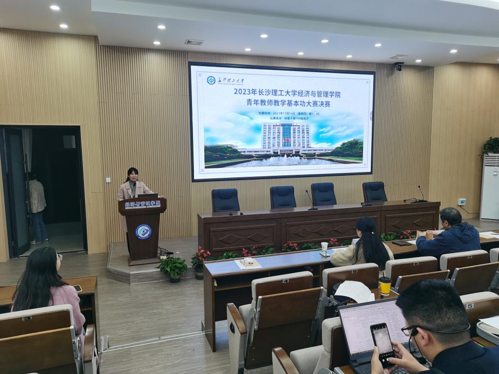 12月14日,经管学院在经管大楼100报告厅举办了2023年青年教师教学基本功赛院级决赛。比赛由副院长刘坚主持,三名省内知名的教学竞赛专家参与评审。根据学校要求,本次决赛前已进行了院级初赛,学院所有符合参赛条件的青年教师均积极参加。经网审评委的评定,院级初赛前6名优秀青年教师参加了本次院级决赛。
