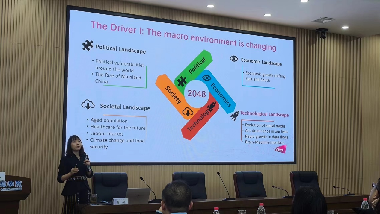2023年12月25日下午,香港城市大学协理学务副院长、市场营销学讲座教授李娟老师在我院经管大楼100报告厅开讲“工商管理类前沿系列名师专题课”第十讲,授课主题为“拥抱跨学科:增强技术价值和市场影响力”。学院师生代表参加了此次名师课,何昊副院长主持了此次名师课。