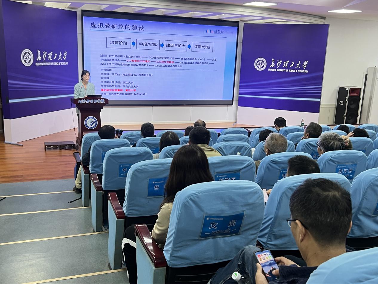 为了进一步推进课程知识图谱建设,助推我院教育数字化转型和智能升级,学院于11月5日下午,在金盆岭校区12教200会议厅,组织系正副主任、系书记、教研室主任、省级以上一流课程负责人、教学团队成员、青年教师等教学骨干力量,邀请智慧树金牌讲师谢文萍老师给大家分享了题为“AI赋能新形态课程和专业建设”的报告,并做了现场答疑。院长彭新宇主持培训并做了总结发言,号召各专业开始建设知识图谱和AI建课。