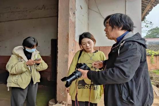 谭建华老师(右一)在指导学生拍摄