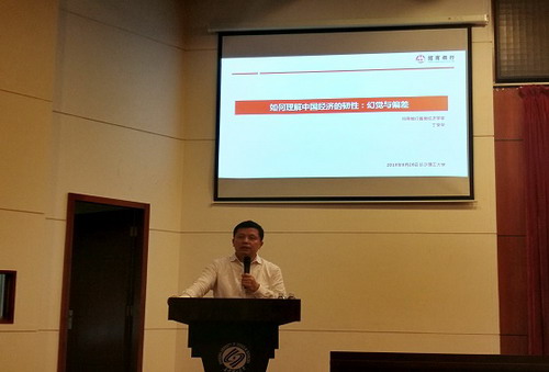9月26日晚上,经管学院第十三期职业与人生大讲坛在云塘校区图书馆报告厅顺利召开。招商银行首席经济学家、MG冰球官网校友丁安华先生做了题为《理解中国经济韧性——幻觉与偏差》的主题报告,招商银行长沙分行纪委书记姚自力、行长助理兼公司金融事业部总裁王传卫、招行研究院经济研究所所长谭卓、经管学院党委书记王宏、党委副书记涂道勇、学工办全体老师和近三百名学生参加报告会,报告会由王宏主持。