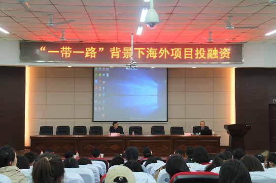 报告开始前,院长陈银娥为房小兵总经理颁发研究生校外合作导师聘书。房小兵以全球经济视角,从“一带一路”背景介绍、“一带一路”背景下的海外投资、项目融资安排、“一带一路”投融资战略构想、未来展望五个方向进行讲解。报告由浅入深,从“一带一路”的相关概念、顶层设计、整体布局、发展情况开始介绍,讲述目前中国的海外投资情况,面临着的风险,应对的对策及措施等内容,房小兵在报告中引用了很多案例,结合自身工作的经验,使得报告专业有深度并易于理解。