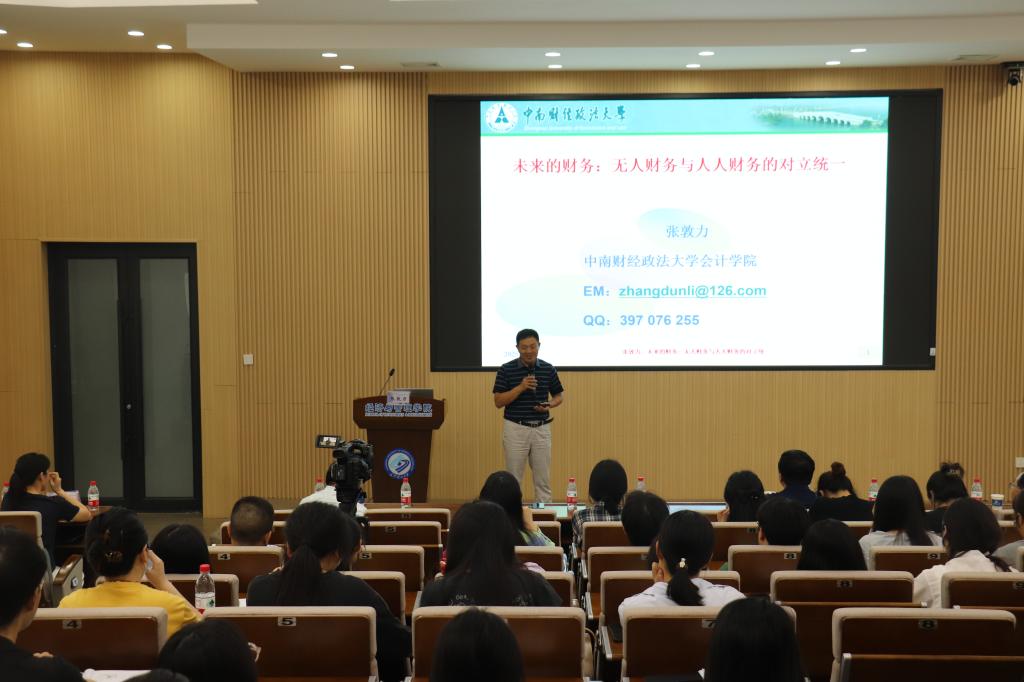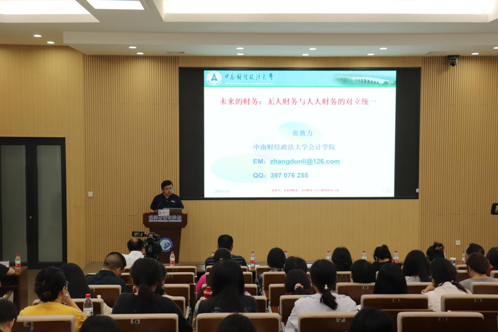 2025年5月16日下午,由中国会计学会、全国会计专业学位硕士研究生教育指导委员会主办,MG冰球突破官网经济与管理学院承办的“MPAcc会计名家公益大讲堂”在金盆岭校区经管大楼100报告厅举行。本次大讲堂邀请到中南财经政法大学张敦力教授,围绕“财务的未来:无人财务与人人财务的对立统一”展开深入探讨。经济与管理学院院长彭新宇及140余名师生参加了本次讲座,讲座由学院副院长王治主持。
