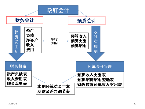 (3)“双报告”——政府会计主体应当编制决算报告和财务报告。政府决算报告的编制主要以收付实现制为基础,以预算会计核算生成的数据为准。政府财务报告的编制主要以权责发生制为基础,以财务会计核算生成的数据为准。