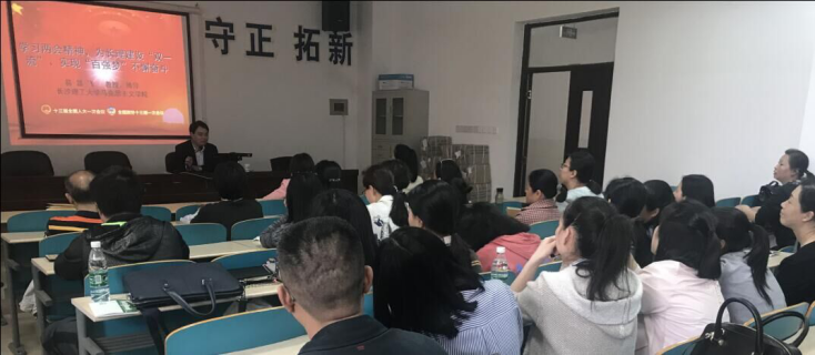 4月10日下午,计财处党支部在文科楼C202进行了专题党课学习。受支部邀请,马克思主义学院党委书记、博士生导师易显飞教授作了“学习两会精神,为长理建设‘双一流’、实现‘百强梦’不懈奋斗”的专题辅导报告。专题辅导报告会由支部书记陈克猛主持,计财处全体党员、入党积极分子及职工等50余人一同听取了本场专题辅导报告。
