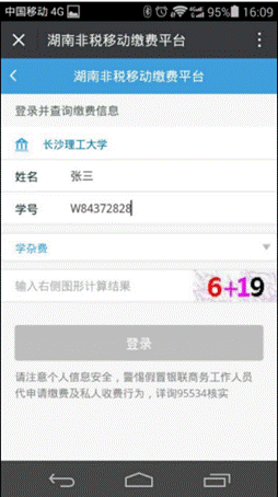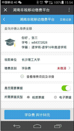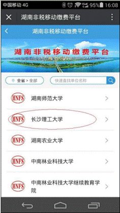 3、进入湖南省非税移动缴费平台-》教育-》选择学校(MG冰球突破官网)-》进入登录界面,输入学生姓名,学号栏可以输入学号或者身份证号,在此选择缴费类型,缴费类型有“学杂费”、“重修费”、“报名考试费”、“其他费用”。缴费时请选择相应缴费类型。