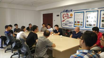 9月19日上午,计通学院副书记陈华、院长助理陈曦(小)、网络系王静和刘青老师一行走访了位于地理信息产业园的天地图湖南科技有限公司,召集在公司参加实习的部分15级网络专业学生召开实习总结会。天地图湖南科技有限公司领导艾驰、杨柳洋、技术总监胡海龙、企业导师曽寒晗对陈华一行表示热烈欢迎并出席总结会。