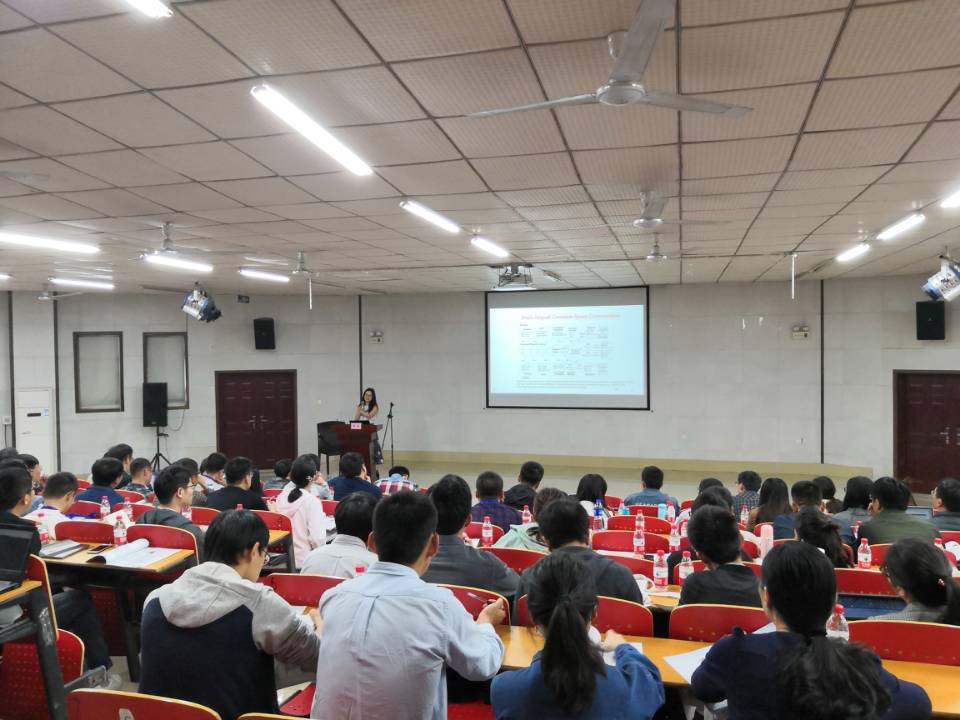 来自美国伦斯勒理工学院的季姮教授,其研究兴趣集中在自然语言处理,特别是信息提取和知识库,本次讲习班她向到场的老师同学们分享了“跨语言实体发现和链接”的相关研究内容。