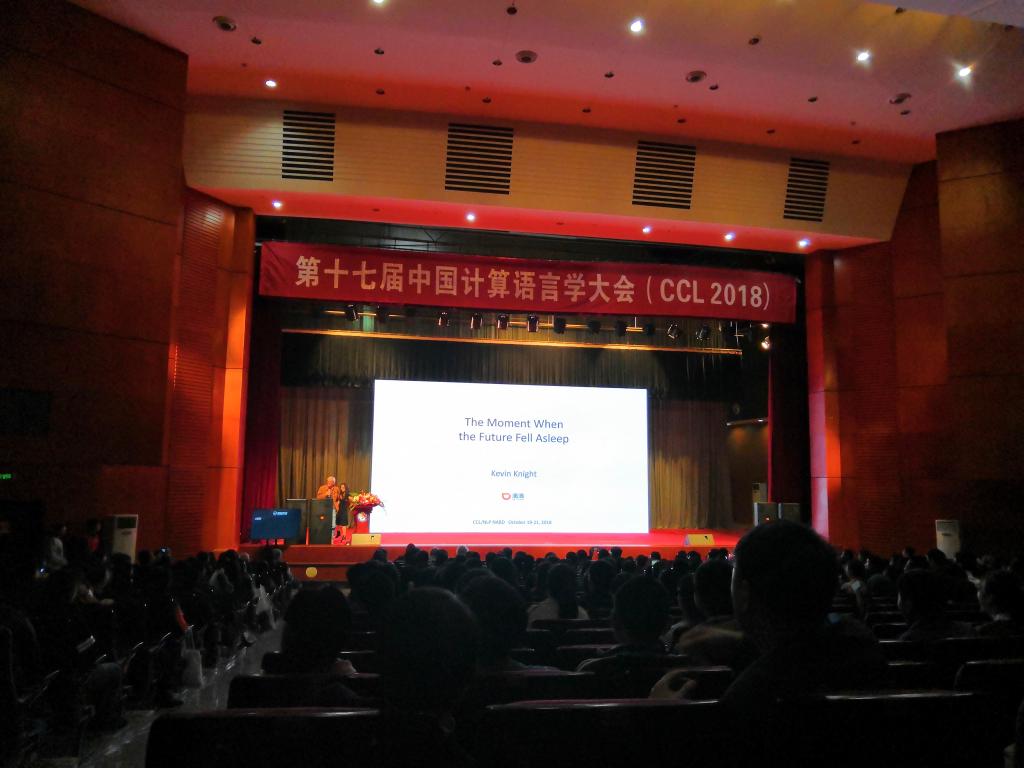 10月20日上午,滴滴出行自然语言处理首席科学家Kevin Knight教授在MG冰球突破官网大会堂做了题为“The Moment When The Future Fell Asleep”的第十七届中国计算语言学大会主题演讲,吸引了大批专家学者聆听学习。