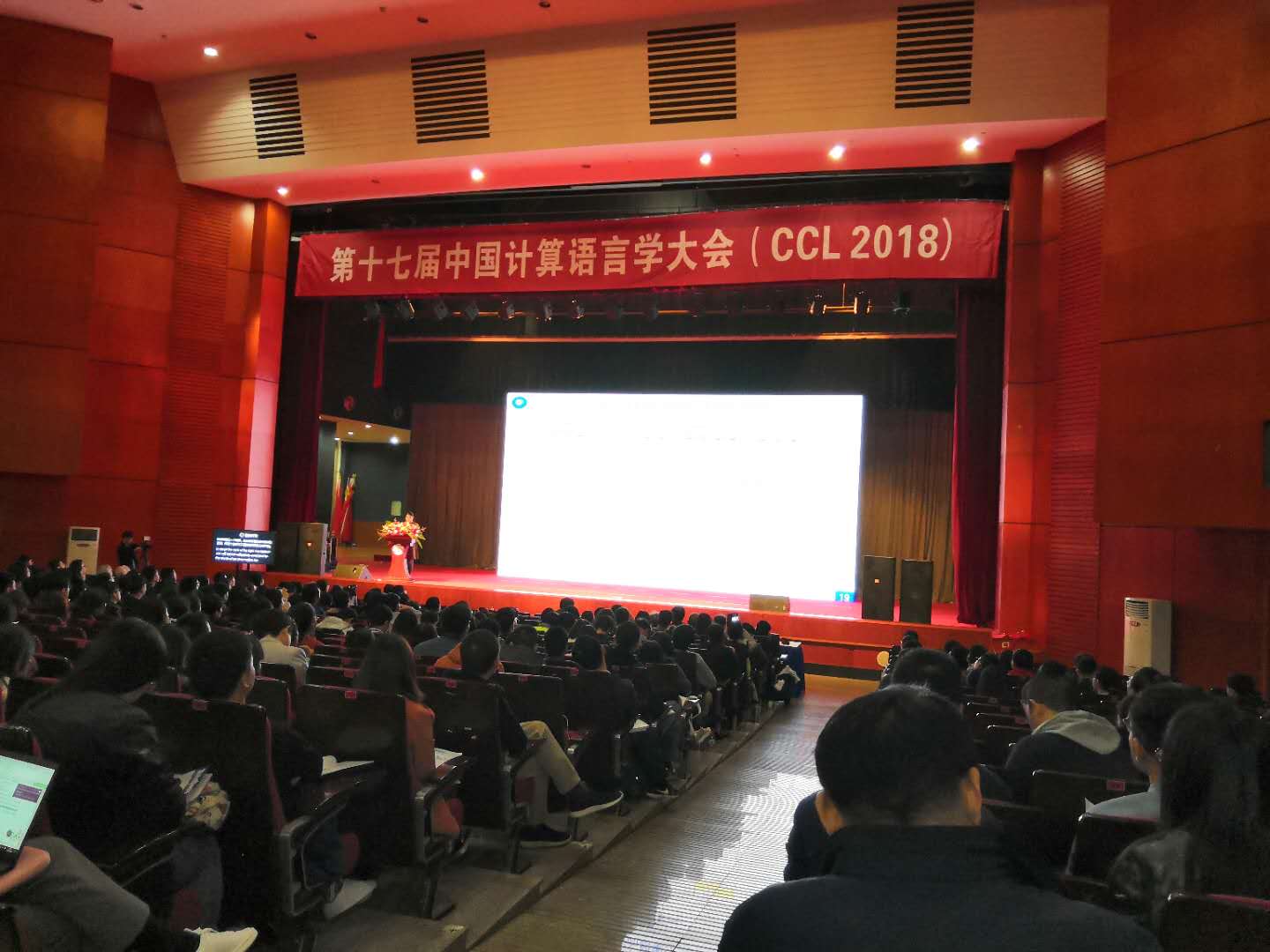 10月20日下午,第十七届中国计算语言学大会(CCL2018)口头报告会在MG冰球突破官网云塘校区大会堂举行, 20 位项目负责人就机器翻译、集句诗自动生成、韵律短语识别、法律问题关键词抽取、特定目标情感分类等多个方向给出了四场口头报告。