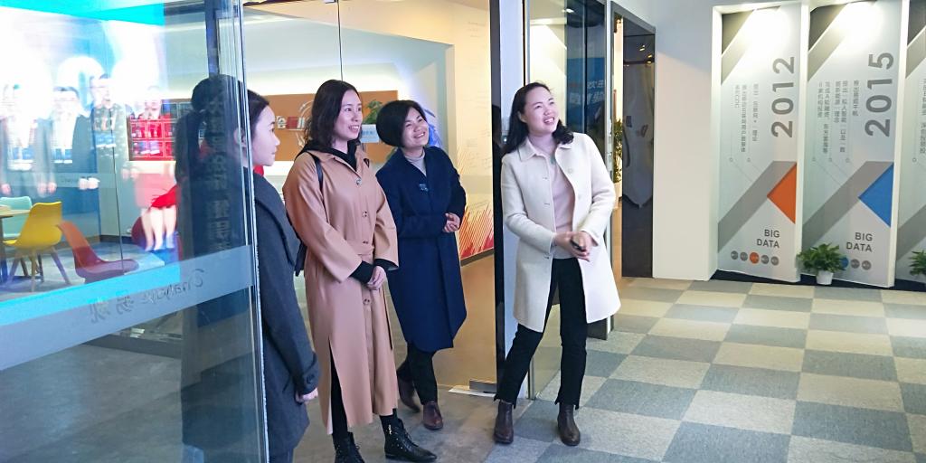 11月29日上午,计通学院党委副书记陈华、16级辅导员王建新一行来到了北京易观智库网络科技有限公司长沙分公司,易观长沙分公司技术总监雷鹏、大数据技术经理廖云志、运营总监周丽霞对陈华一行表示热烈的欢迎。陈华看望了在易观实习的学生,对同学们能够积极、认真的参加专业实习实践活动表示赞赏。她仔细询问了同学们实习以来的工作和生活情况,要求实习同学要珍惜实习机会,积极主动、虚心请教、圆满完成实习任务。随后陈华一行参与了北京易观智库网络科技有限公司的发展历程、大数据技术以及企业文化。