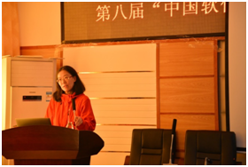 大赛组委会代表安苾寒介绍 就大赛的背景及意义、大赛的成果及亮点、第八届大赛的整体安排和创新等方面对大赛进行了详细阐述。大赛由工信部、教育部、江苏省人民政府联合主办,秉承“政府指导,企业出题,高校参与,专家评审,育才选才”方针,整个过程覆盖软件人才培养每一环节,以大赛为牵引,强化了软件人才培养的创新机制和协作形式,创建了以“政产学研用”为核心的软件人才培养新模式。