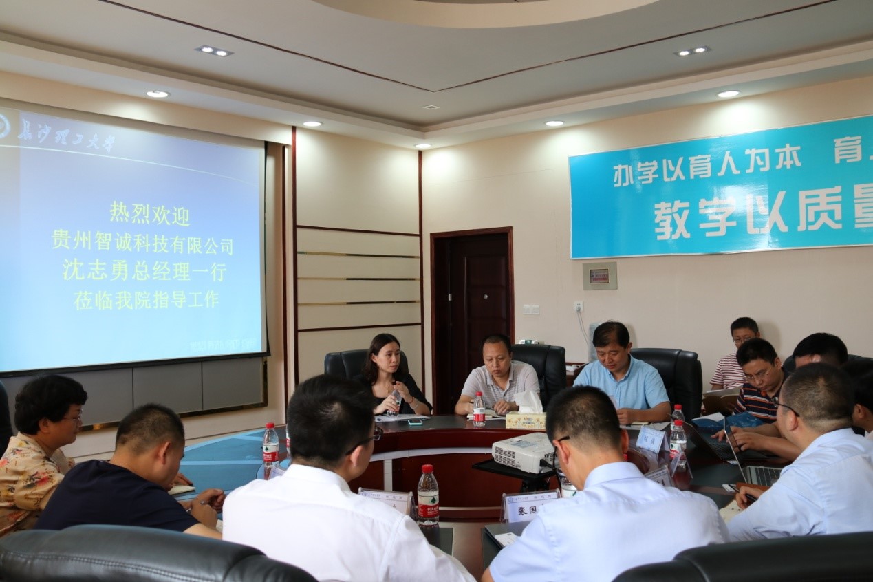 6月24日,我院与贵州智诚科技有限公司关于开展校企合作的讨论会议在理科楼B502顺利召开。参加本次会议的有贵州智诚科技有限公司总经理沈志勇一行,王进院长、夏卓群副院长、王威副院长以及陈华副书记。