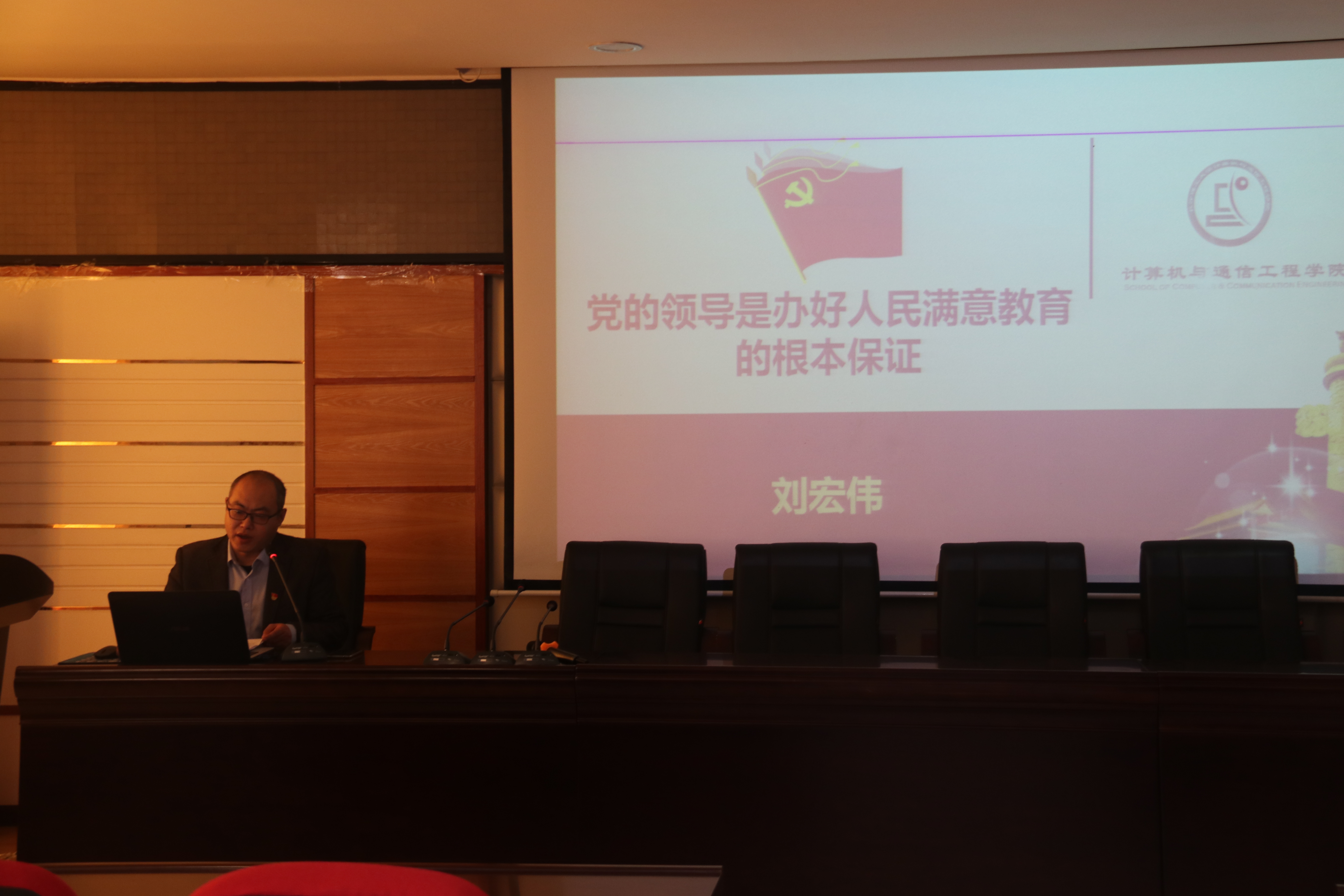 11月10日下午,院党委书记刘宏伟在理科楼B311以《党的领导是办好人民满意教育的根本保证》为题为学院全体教工党员和全体学生党支部书记、支委上了一堂生动的党课。