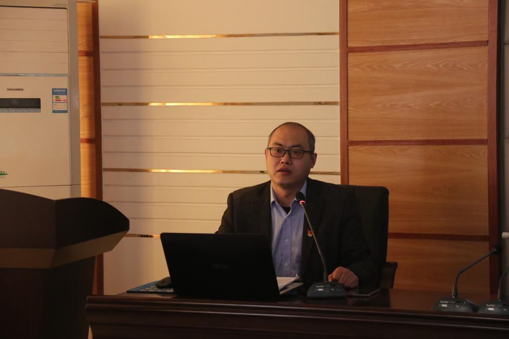 刘宏伟结合学院工作实际,从“中国共产党领导是中国特色社会主义最本质的特征、学院如何坚持党对教育事业的全面领导、党员教师是推动学院发展的中坚力量”三个方面进行了讲述。