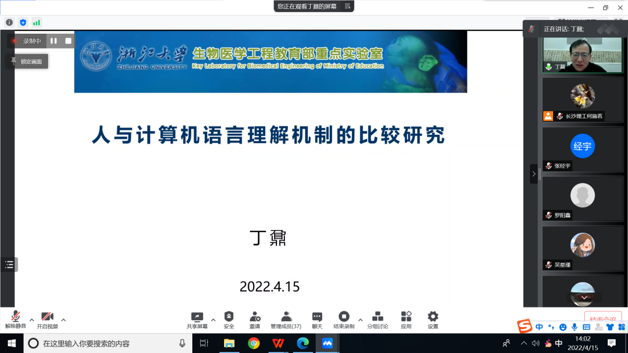 4月15日下午,MG冰球突破官网计算机与通信工程学院“云峰”论坛前沿论坛2022年第1期线上会议成功举行。本次会议邀请到了浙江大学生物医学工程与仪器科学学院丁鼐研究员和国家超级计算长沙中心副主任彭绍亮教授分别做了“人与计算机语言理解机制的比较研究”和“基于超算的元宇宙算力和应用展望”的精彩的学术报告。我院师生共100余人参加了报告会,报告会由计通学院院长张锦教授主持。