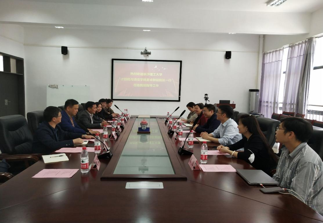 4月23日,我院夏卓群、蔡烁副院长率队赴南华大学计算机学院调研学习其在工程教育专业认证方面的经验。南华大学计算机学院党委书记谭敏生、院长万亚平、副院长何啸峰、副院长欧阳纯萍等出席了调研会。