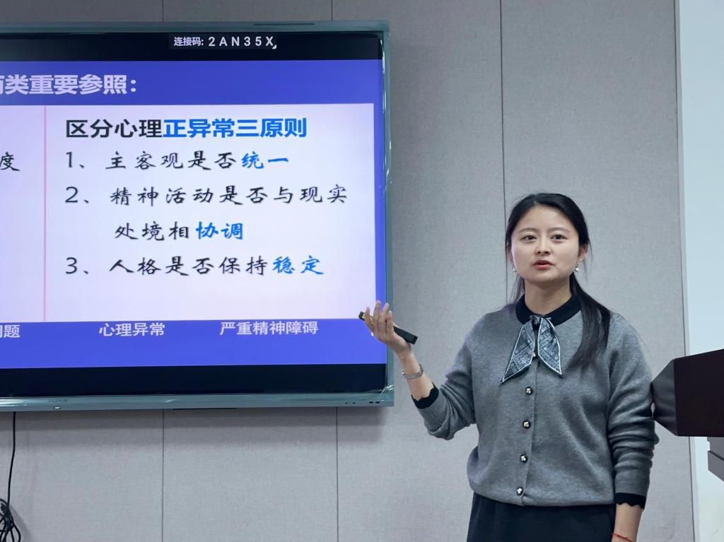 潘枝花以“大学生常见心理问题”为主题,通过具体的案例对如何识别学生心理问题并有效沟通处理、如何预约心理咨询及获取精神医学援助资源等方面做了详细的介绍。她号召老师们用师爱为学生提供支持系统、积极有效应对学生危机事件,为学生健康成长保驾护航。