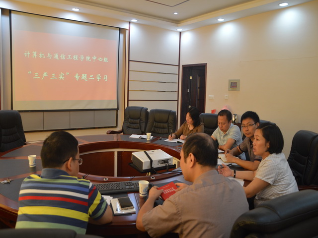 计通学院党委中心组分别于2015年7月6日和9月18日在理科楼B502开展了“三严三实”专题教育第一、二专题的学习与研讨交流。专题一重点围绕严以修身、加强党性修养、坚定理想信念、把牢思想和行动的“总开关”开展研讨交流,专题二重点围绕严以律己、严守党的政治纪律和政治规矩、自觉做政治上的“明白人”开展研讨交流。中心组开展专题学习与研讨交流以来,一次比一次更深入、更自觉、更认真,联系实际更多了,给人以启示和教育。通过进一步的学习与研讨交流,成员们表示在巩固教育实践活动成果中、在推动学校改革发展和加强政治思想作风建设中将努力践行“三严三实”,把“三严三实”作为正心修身的重要守则、干事创业的行动准则,以“三严三实”的作风投身学校深化改革实践中,更好的履职尽责,为加速学校发展不懈努力。