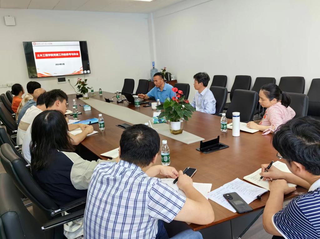 江河以《土木工程学院党建工作的思考与体会》为题,从简介、思考、做法、成效、体会五个方面,对土木工程学院党建工作情况进行了介绍。