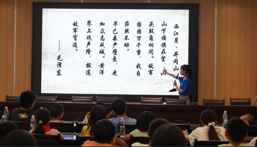 宣讲团开展了多场“不忘初心,砥砺前行”井冈山精神宣讲课堂,为孩子们带来多堂生动的历史故事课。宣讲团成员秉持着“宣讲红色故事,弘扬红色精神”的初心,以描绘井冈山黄洋界之战的诗词与宣传视频引入,向孩子们介绍了在井冈山革命根据地诞生的背景下,井冈山精神重要的历史意义,以及井冈山地貌奇观和历史底蕴。