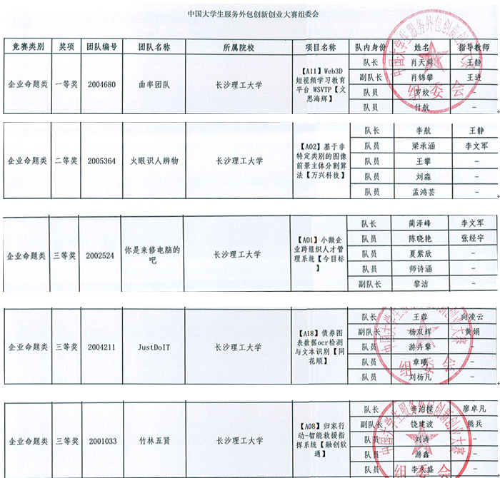 中国大学生服务外包创新创业大赛由教育部、商务部和无锡市人民政府共同主办2010年来,大赛的办赛规模逐年扩大,内涵不断提升,成效日益显著,得到了政府、企业、高校和学生的广泛认可。大赛分企业命题类A类)和创业实践类B类)两个竞赛大类,A类赛题共21道,由17知名企业提供,B类为自选参赛项目。本届大赛吸引了来自复旦大学、上海交通大学、武汉大学等663所全国院校的6750支团队报名参赛,最终决出全国一等奖21项(A15项,B6项),二等奖122项,三等奖270项。