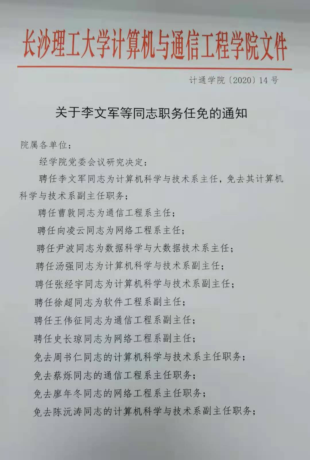 关于李文军等同志职务任免的通知