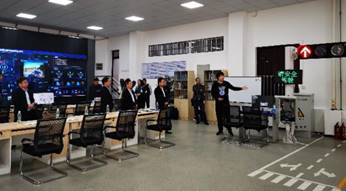 首先,验收专家组对实验室建设场景及设备进行了实地考察,实验室成员分别对车路协同室内实验系统、智能道路与车路协同云平台、车联网虚拟仿真平台、智慧照明测试系统、智能网联汽车开发测试平台、智能道路与车路协同校园示范线路、综合交通大数据平台等七个实验平台向专家组进行了详细介绍和演示。