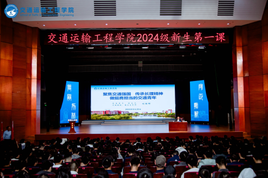 10月20日晚上,校党委委员、副校长刘朝晖教授为交通学院2024级全体新生讲授第一课。全体在家院领导、各系办负责人、院关工委老师、全体新生班主任、辅导员,以及1200余名本科生、研究生新生现场听课。