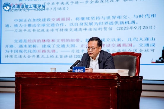 刘朝晖作《聚焦交通强国 传承长理精神 做挺膺担当的交通青年》主题报告,与新生们共话交通强国建设、青年使命担当。他对全体交通学生提出了“交通青年三问”,即“什么是交通强国”“为什么要建设交通强国”“围绕交通强国我们应该怎么做”,深刻阐述了交通学子深入学习习近平总书记关于交通强国的重要论述的重要性,立足新中国75周年引领广大学生全面领会新中国成立以来交通建设发展的伟大成就,结合长理交通学子的历史使命与责任担当提出了明确要求。
