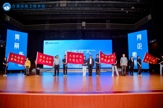 师生代表共同朗诵《你好,交通青年》,刘朝晖和院领导为新生代表授旗,勉励全体新生紧跟党走、坚定信念、努力奋斗。