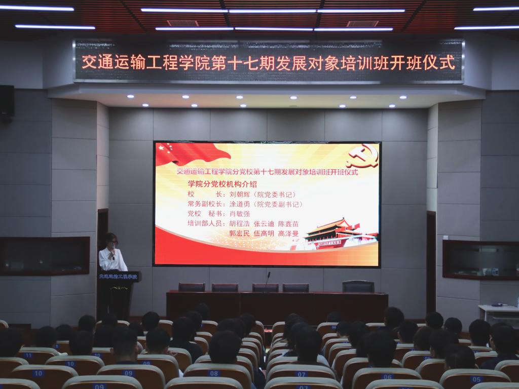 11月9日晚,交通学院分党校于工二交通科技报告厅举行第十七期发展对象培训班开班仪式,党委副书记、分党校副校长涂道勇,分党校秘书肖敏强和第17期发展对象培训班全体学员参加。