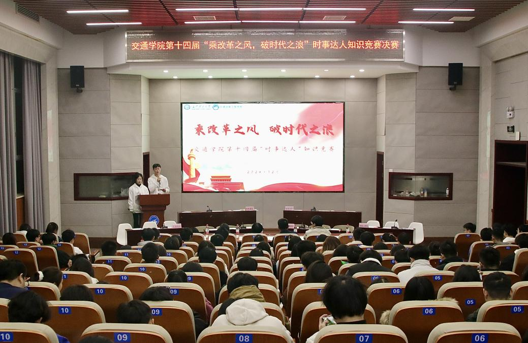 12月18日,正值我国第46个改革开放纪念日之际,交通运输工程学院举办了第十四届“乘改革之风,破时代之浪”时事达人知识竞赛决赛。比赛在工科二号楼的交通科技报告厅举行,学院关工委常务副主任吴滨老师、学工办辅导员彭笠老师,各支部副书记及100余名观众出席了此次活动。