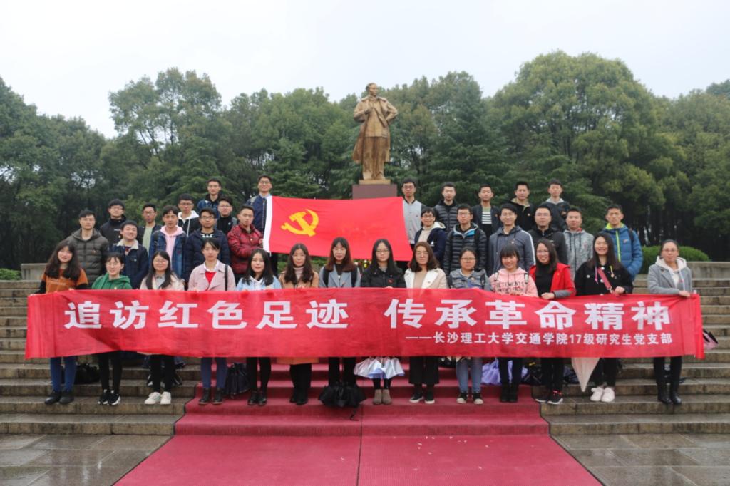 为响应“两会·改革新征程——加强爱国主义教育,让红色基因代代相传”的号召,MG冰球突破官网交通运输工程学院17级研究生党支部于3月18日在韶山、花明楼开展了“传承红色基因—伟人故里之行”活动,旨在追寻伟人足迹,传承革命精神,培养青年党员的公仆意识和为民情怀。