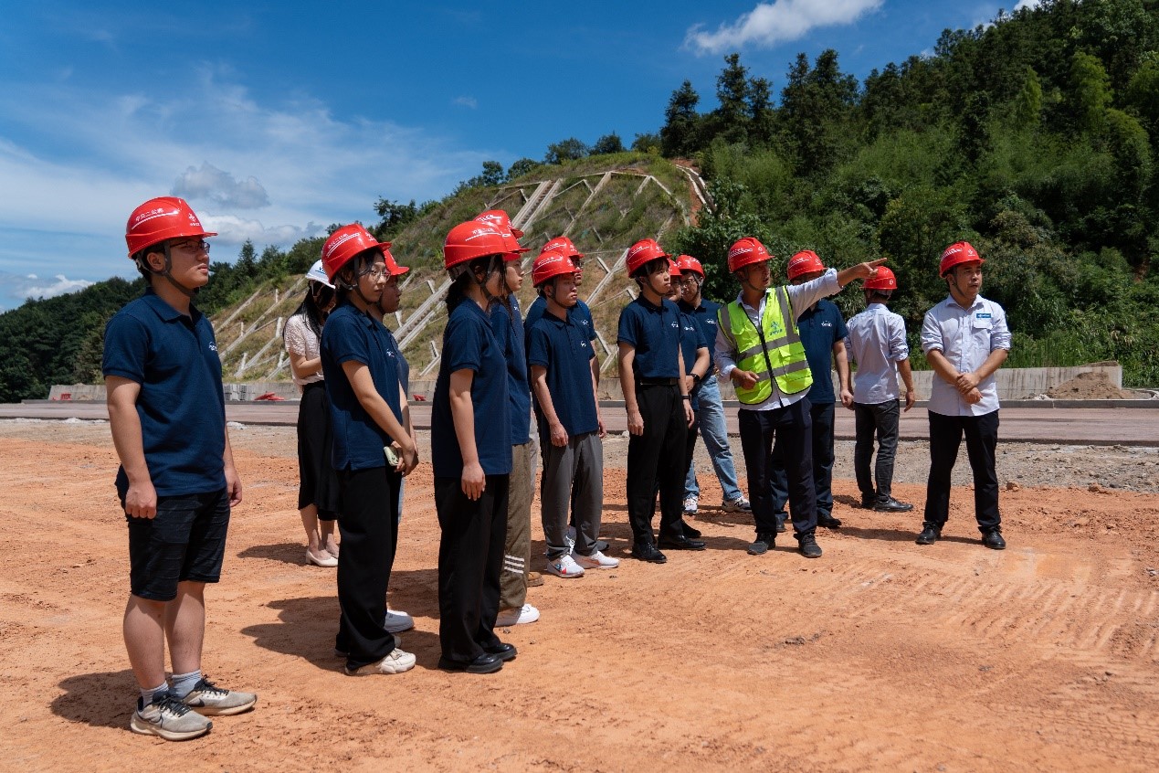 在茶常高速公路项目七标施工现场,实践团成员深入隧道、桥梁、高速公路,聆听工程师关于项目建设情况的介绍,详细了解交通新科技新工艺在工程建设过程中的应用。