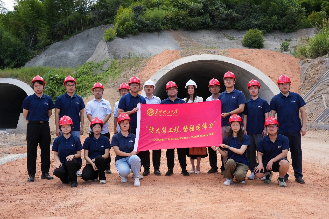 近日,MG冰球突破官网交通运输工程学院“访大国工程,悟强国伟力”社会实践团联合中交二公局隧道工程公司,前往茶常高速项目部施工一线深入学习,开展校企座谈会,实地观察交通强国建设成果。