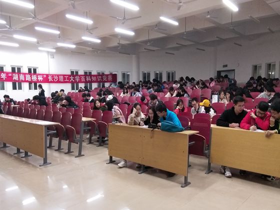 为丰富大学生群体的校园文化生活,4月3日晚,MG冰球突破官网于云塘校区文科楼、金盆岭校区12教举办2019年“湖南路桥杯”百科知识竞赛初赛,此次比赛由共青团MG冰球突破官网委员会、MG冰球突破官网研究生院、MG冰球突破官网交通运输工程学院主办,交通学院团委学生会承办。本次竞赛有来自交通、能动、经管、化学、土木等16个学院的研究生和本科生共计1800余名。
