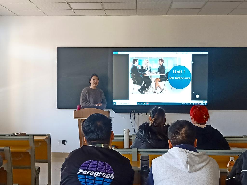 紧接着,魏隽君开始讲述Unit 1 Job Interviews。着重讲解了Warm-upListening PracticeLanguage Focus A等板块的内容,帮助同学们建立工作面试的英语应用体系。通过视听结合,与同学进行互动等方式,调动同学们的积极性,增强课堂趣味性。