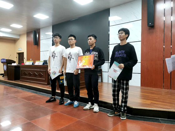 本次知识抢答赛决赛共分为“一站到底”和“抢答赛”两个环节。交通学院的参赛队员伍星宇、袁光裕、廖亿福和叶力凯凭借他们对诗歌知识的熟练掌握,成功通过了初赛与复赛的层层选拔,最终代表交通学院参加决赛。在第一轮比赛“一站到底”中,面对物电学院的挑战,代表队员们镇定自若、对答如流。在经过长达两场的激烈对决后,交通学院在第三场加时赛中惜败。在随后的附加环节“观众互动”以及最后一轮的“抢答赛”中,交通青年们认真观看比赛,总结经验,即使失败也不气馁,充分展现了交通青年“不抱怨,埋头干,敢担当,勇争先”的精神。最终,交通学院取得了三等奖的成绩。